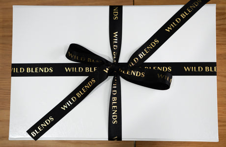 It contains a 50g size Wild Blends tea of your choice, our handmade ceramic daisy mug & a stainless steel stick tea infuser. It's then packaged in a beautiful white hamper box and wrapped in our branded black silk ribbon. Ready to gift and no wrapping involved!